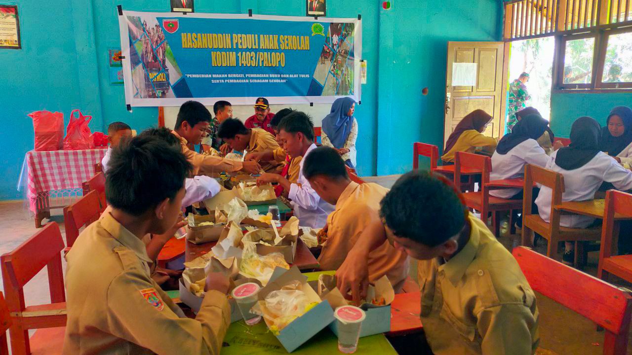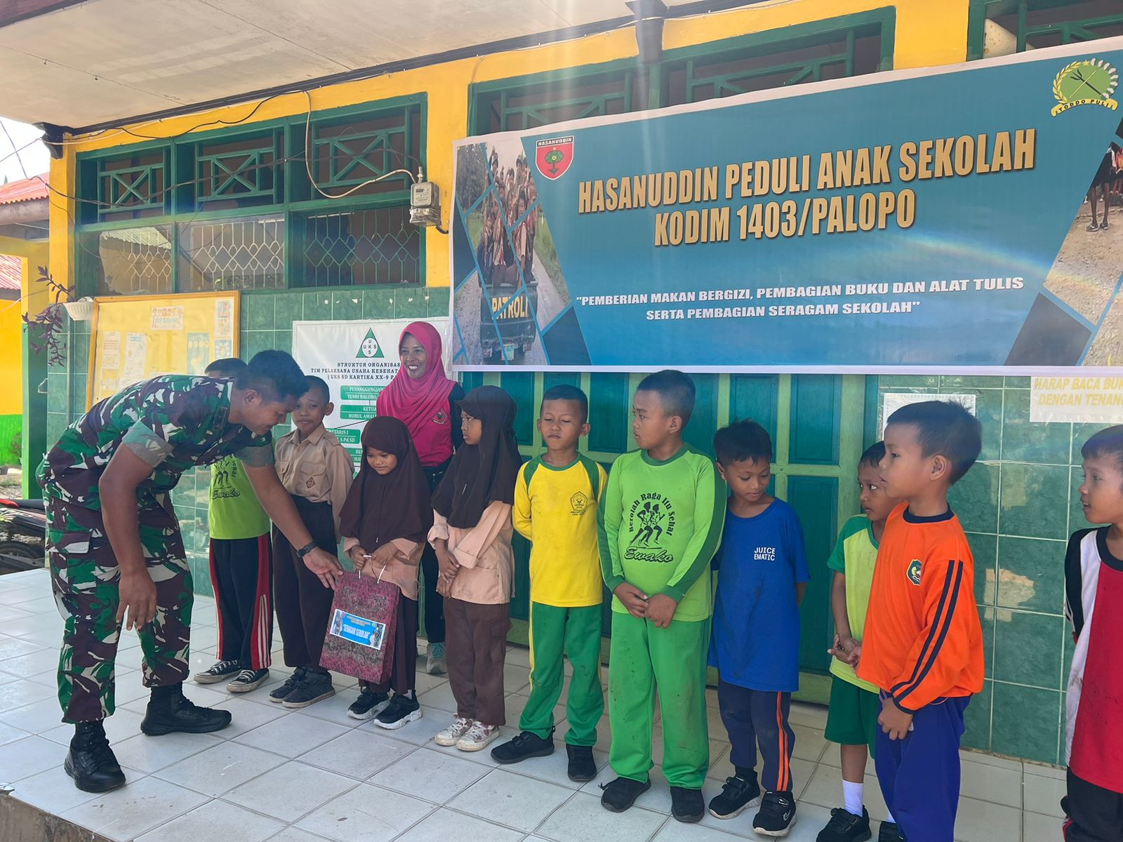 Dalam kegiatan ini Kodam XIV/Hasanuddin Peduli kodim 1403/Palopo kepada Anak Sekolah yaitu Memberikan Seragam sekolah, Buku, Alat tulis dan makanan bergizi bagi siswa siswi di wilayah kodim 1403/Palopo.