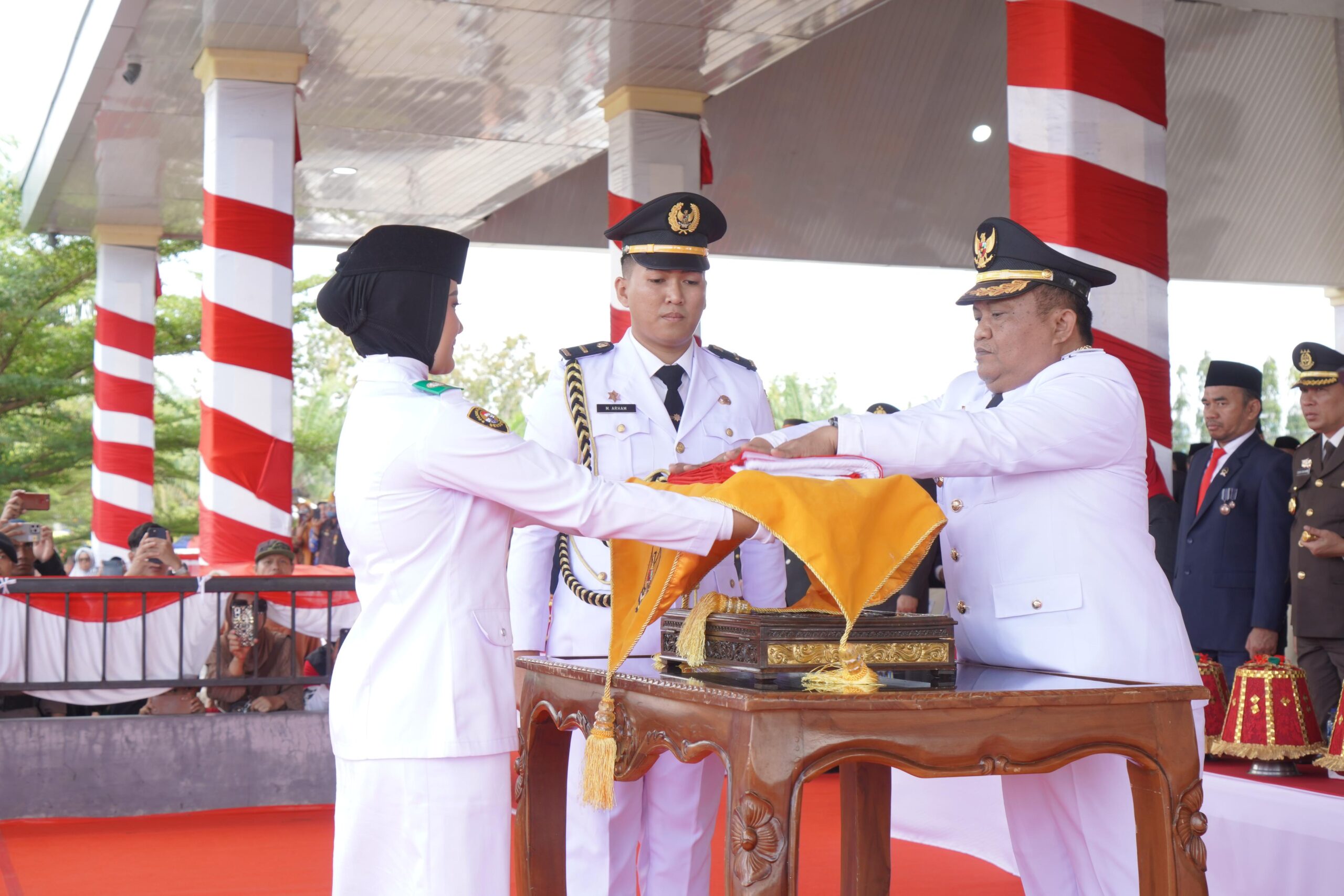 Penjabat Bupati Luwu, Drs. H. Muh. Saleh, M.Si bertindak selaku inspektur upacara. Upacara dihadiri unsur forkopimda, anggota DPRD Luwu, Sekretaris Daerah serta para Kepala OPD lingkup Pemerintah Kabupaten Luwu, Ketua TP-PKK Kabupaten Luwu, Gabungan Organisasi Wanita Kabupaten Luwu, pimpinan perbankan, pimpinan perusahaan Swasta, legiun veteran dan warakawuri.