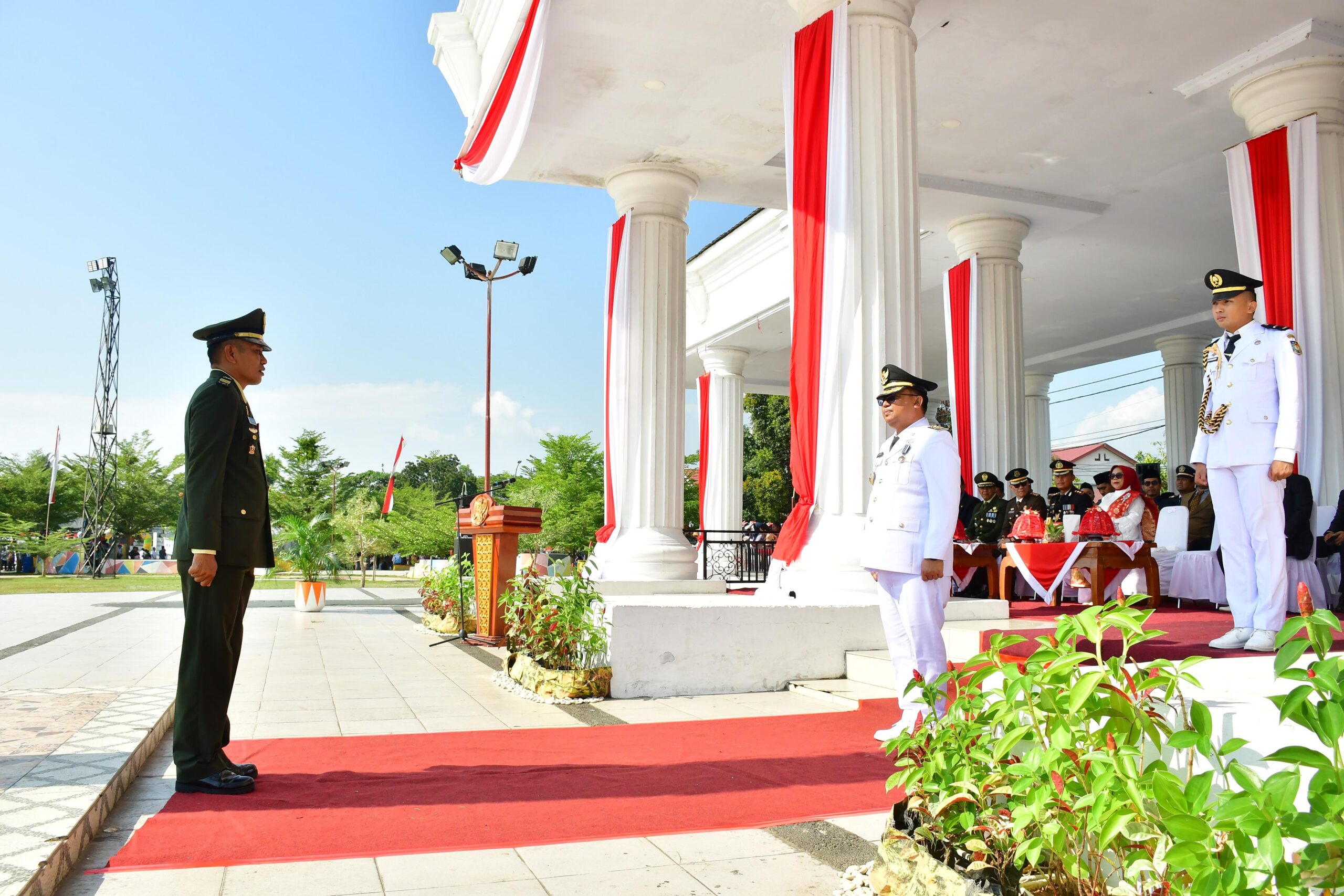 Upacara HUT RI lingkup Pemerintah Kota Palopo dipusatkan di Lapangan Pancasila, Sabtu (17/08/2024), yang dipimpin Komandan Upacara, Danramil Wara Palopo, Kapten Inf. Agus Purwono.