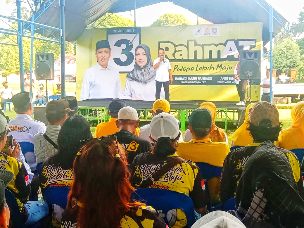 PALOPO,Nusantarahebat.co.id –– Kampanye pasangan calon Wali Kota dan Wakil Wali Kota Palopo, Rahmat Masri Bandaso – Andi Tenri Karta (RahmAT) berlangsung meriah, di Kecamatan Telluwanua, Minggu 16 November 2024. Kampanye ini dihadiri kurang lebih 500 orang masyarakat.