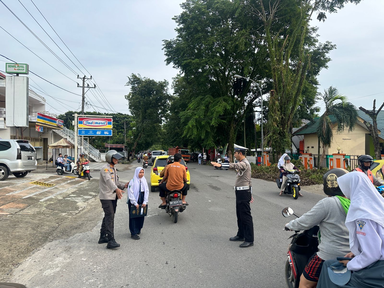 Selain melakukan pengaturan lalu lintas, tim juga melaksanakan patroli dialogis untuk menghimbau siswa agar tidak bolos sekolah dan selalu berhati-hati dalam berkendara.