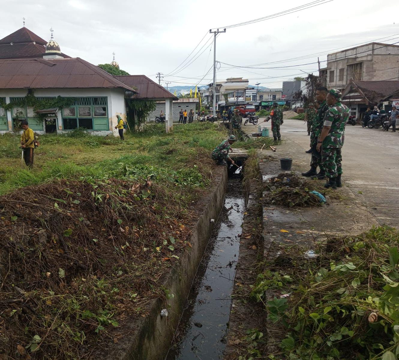 Koramil 1403-11/Masamba Bersama Warga Gotong Royong Bersihkan Saluran Drainase di Pasar Lama