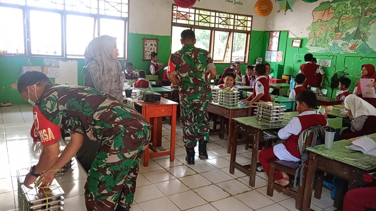 “Walaupun porsinya tidak besar, makanan yang dibagikan mampu memenuhi kebutuhan nutrisi harian siswa dan diharapkan mampu menunjang tumbuh kembang anak-anak secara optimal,” ujar Dandim.