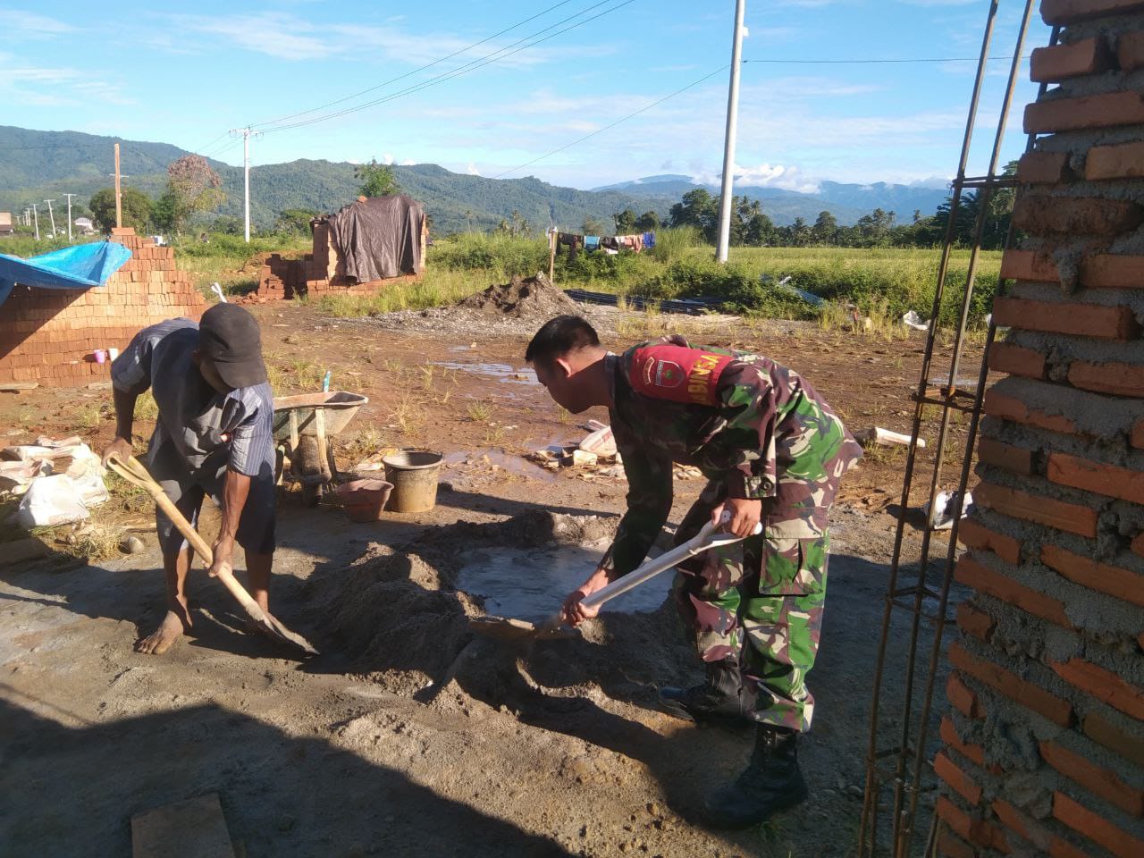 Lutim, NUSANTARA HEBAT.CO.ID –– Babinsa Desa Balantang, Serma Rahman membantu masyarakat membuat rumah di desa binaan guna mempererat tali silaturahim antar sesama.
