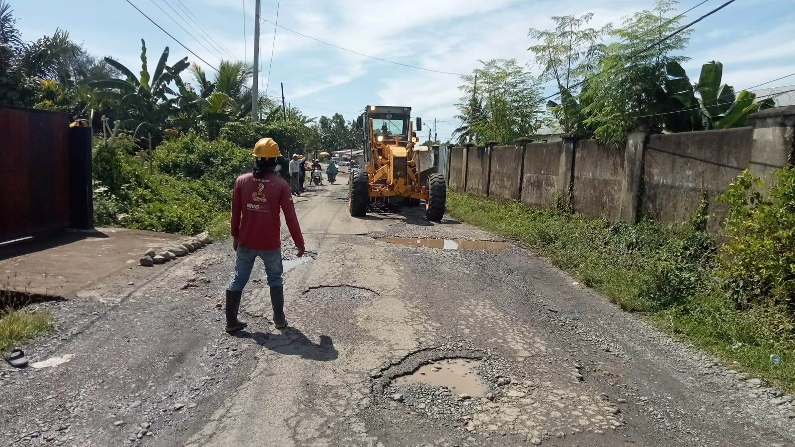 Tampak Pekerja Dari PT BMS mulai dari hari sabtu 12 April 2025 sampai dengan senin 14 April 2025 masih melakukan perbaikan jalan di jalan bakau.