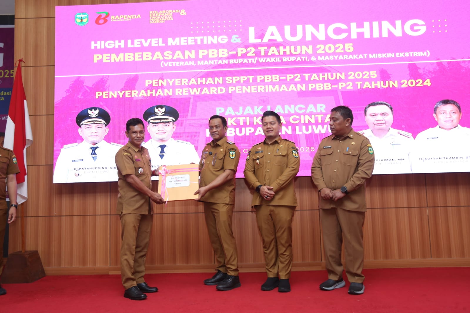 Launching High Level Meeting Tim Percepatan dan Perluasan Digitalisasi Daerah(TP2DD) serta Launching Pembebasan PBB-P2 di akhiri dengan penyerahan pemberian penghargaan atas prestasi capaian pajak daerah tahun 2024 yang dilaksanakan oleh Badan Pendapatan Daerah (Bapenda) Kabupaten Luwu.