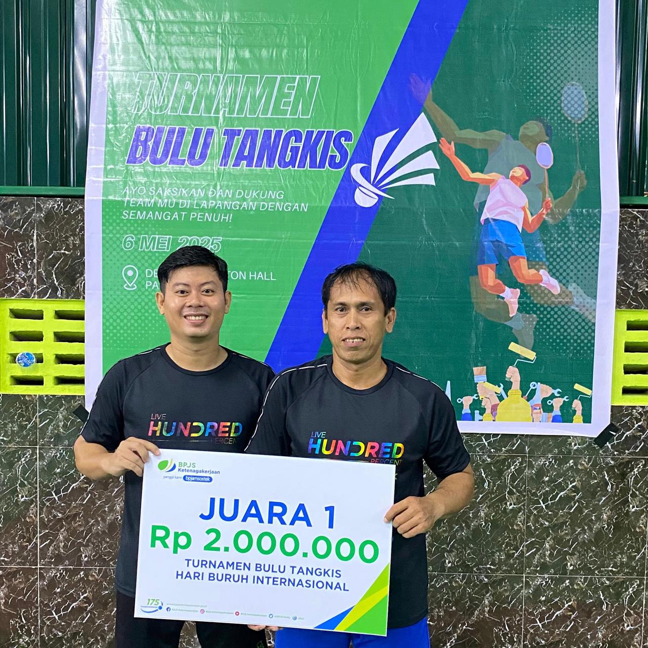 Pasangan Ganda Putra PERUMDA Tirta Mangkaluku Kota Palopo Raih Juara Badminton Cup May Day 2025