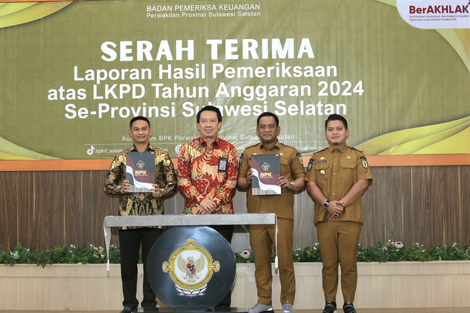 Prestasi tersebut diumumkan saat serah terima LHP-LKPD TA 2024 di Kantor Badan Pemeriksa Keuangan (BPK) RI Perwakilan Provinsi Sulsel di Jl AP Pettarani Makassar, Selasa (27/5/2025).