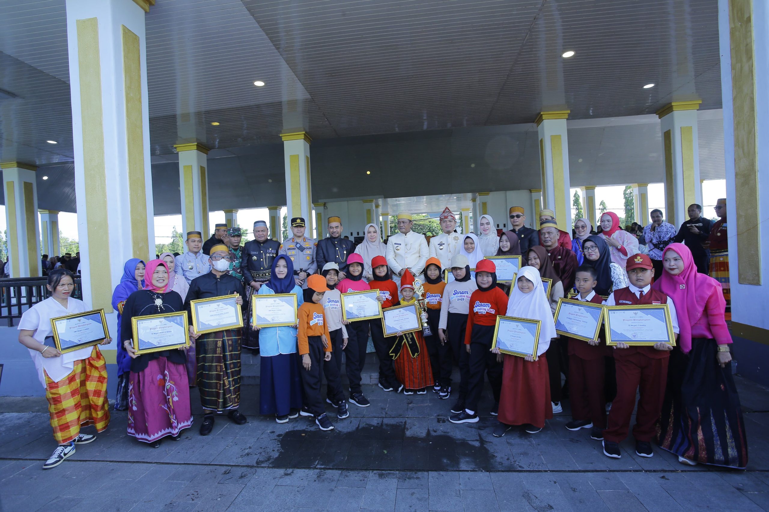 Pada kesempatan itu, Ketua TP-PKK Kabupaten Luwu, Hj. Kurniah Patahudding bersama Ketua Bidang I TP-PKK, Nilasari Dhevy Bijak secara bergantian menyerahkan piala dan penghargaan kepada para pemenang lomba 7 Kebiasaan Anak Indonesia Hebat tingkat SD dan SMP serta Lomba Senam Anak Indonesia Hebat tingkat SD dan SMP.