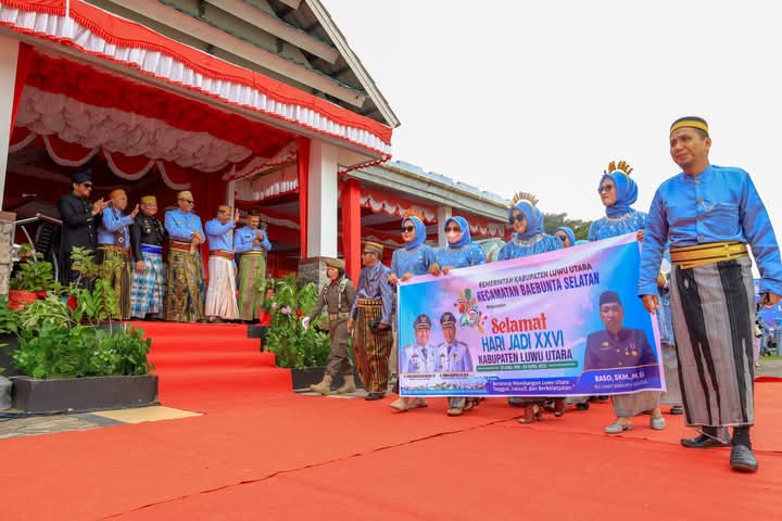 Luwu Utara, NUSANTARA HEBAT.CO.ID — Puncak peringatan Hari Jadi XXVI Kabupaten Luwu Utara, Senin (20/5/2025), yang dipusatkan di Lapangan Taman Siswa (Tamsis) Masamba sukses digelar. Ribuan masyarakat ikut memeriahkan puncak peringatan Hari Jadi Luwu Utara dengan balutan pakaian adat.