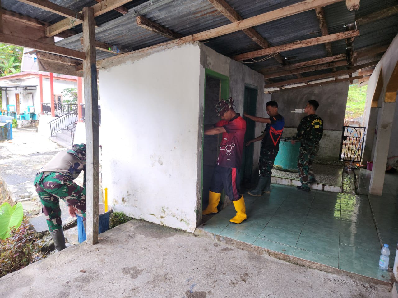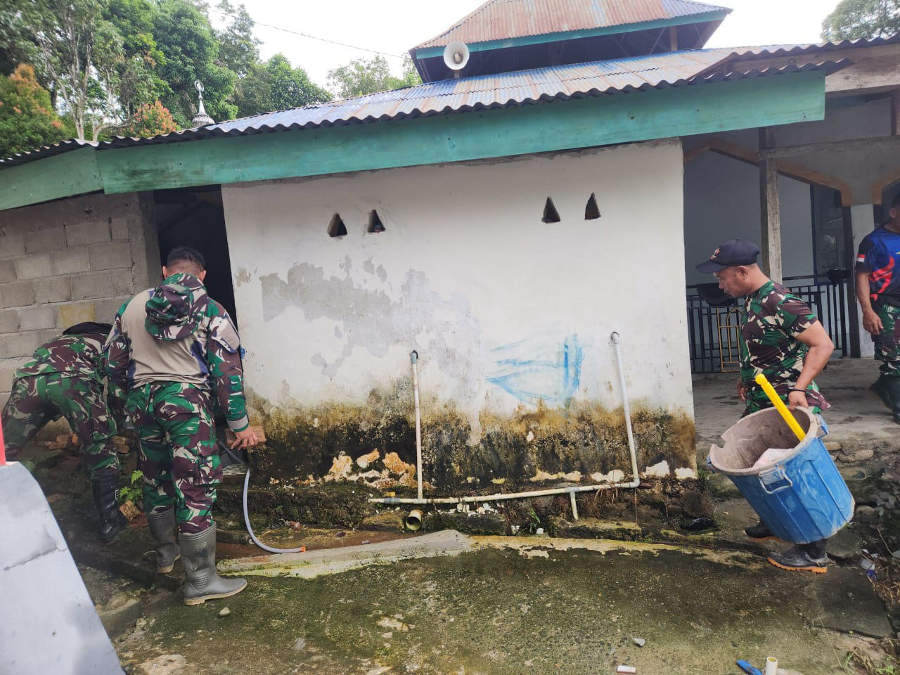 Dengan semangat gotong royong sejumlah prajurit nampak langsung bergerak mempercepat proses pembangunan MCK yang menjadi prasarana utama bagi jamaah masjid, Kegiatan ini tidak hanya bertujuan menyediakan prasarana yang layak bagi masyarakat akan tetapi juga mempererat hubungan antara TNI dan masyarakat setempat.