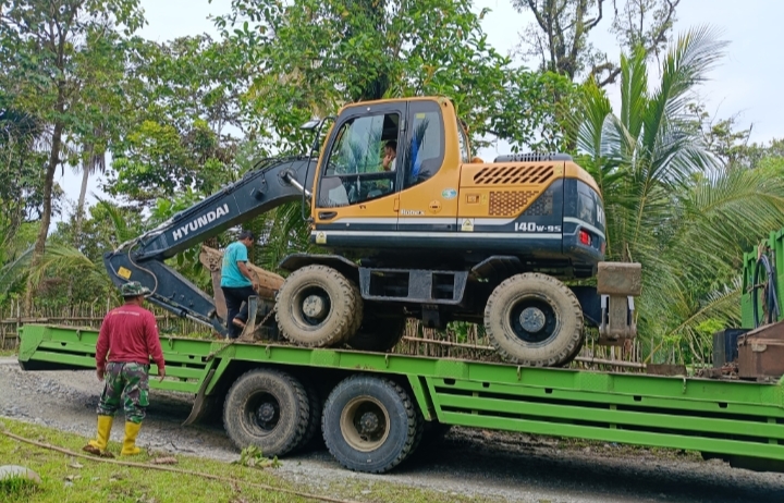 “ Wheel excavator yang kami operasikan hari ini difungsikan untuk meratakan material sirtu yang telah didistribusikan di sepanjang jalan yang menjadi sasaran pembangunan. Selain itu kami juga persiapkan sebagai alat evakuasi terhadap kendaraan pembawa material seritu , dimana Langkah ini sangat penting untuk menjamin kualitas pada proses pengerjaan jalan di Lokasi TMMD,” ujar Kapten Inf Sukardi, Sabtu (31/05/25).