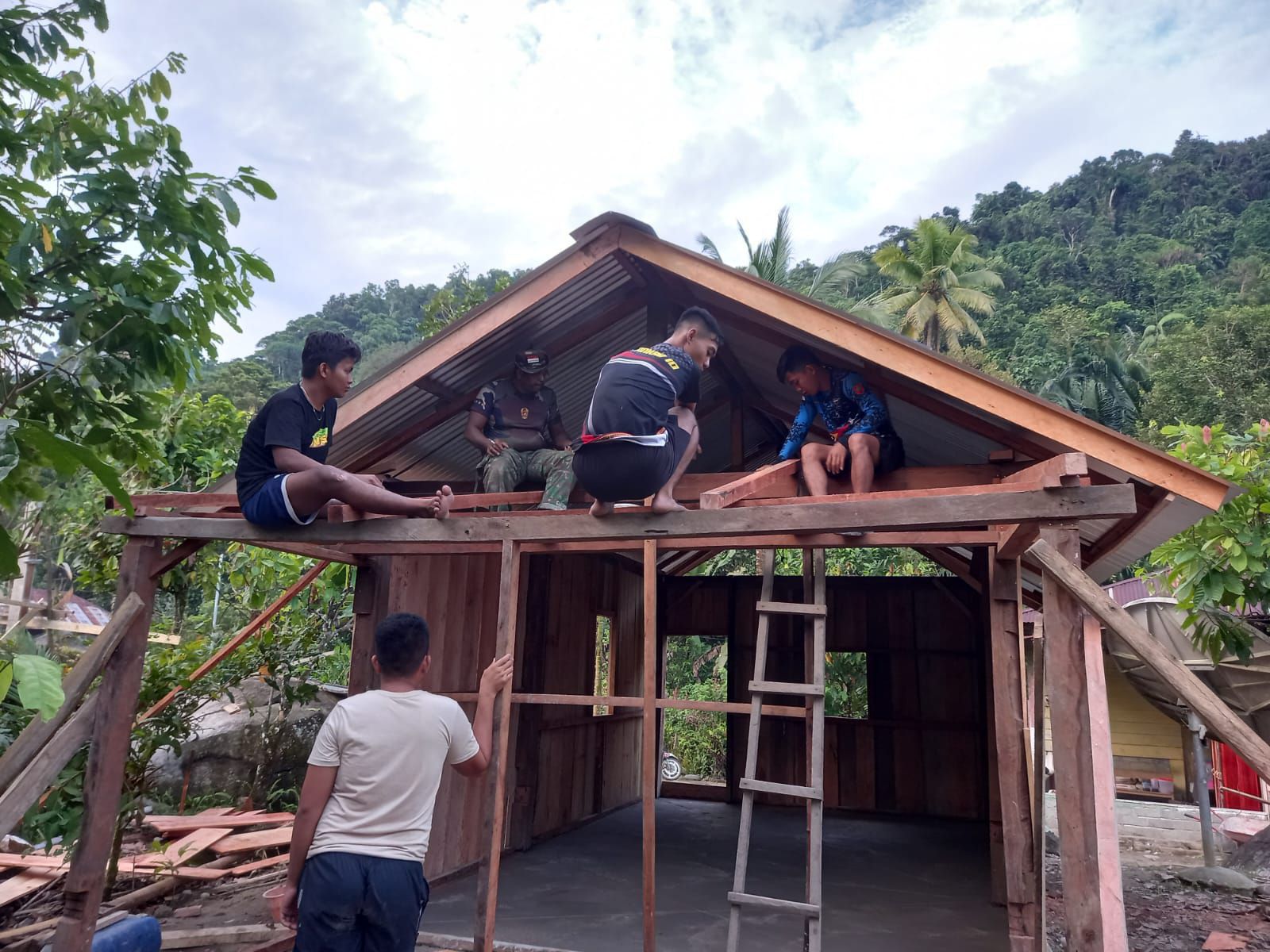 Terpantau pada Minggu (26/05/2025), anggota Satgas TMMD ke-124 Kodim 1403/Palopo sedang melaksanakan pemasangan teras rumah Warga.