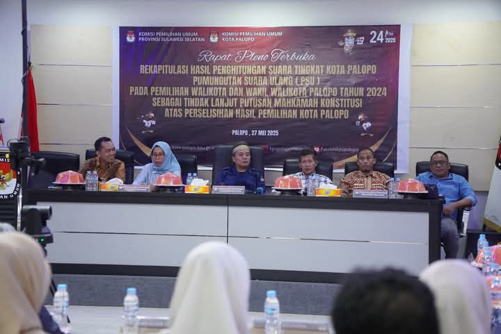 Rapat Pleno Terbuka Rekapitulasi Hasil Perhitungan Suara Tingkat Kota Palopo Pemungutan Suara Ulang (PSU) pada Pemilihan Wali Kota dan Wakil Wali Kota Palopo Tahun 2024 sebagai Tindak lanjut putusan Mahkamah Konstitusi atas Perselisihan Hasil Pemilihan Kota Palopo.