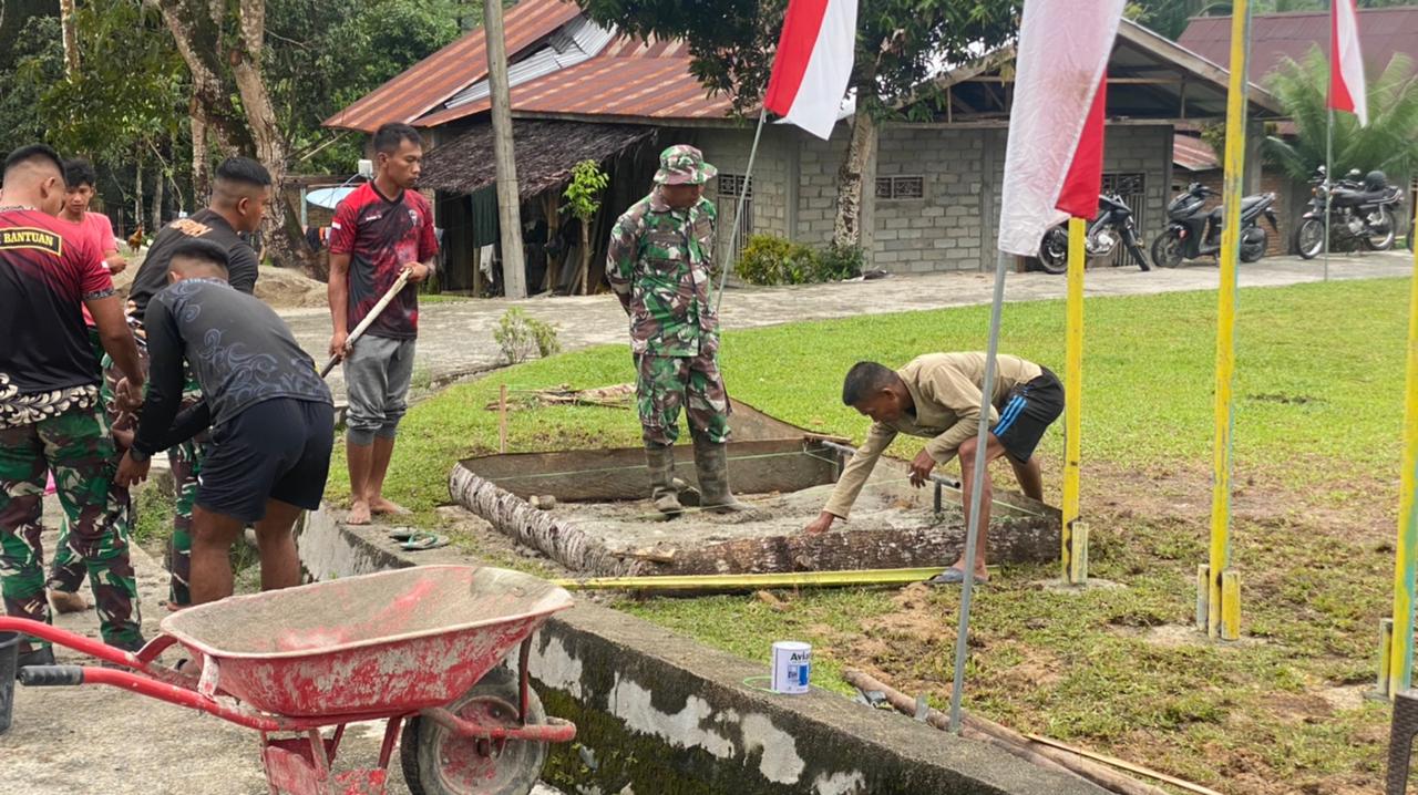 Dijelaskan danramil, pembangunan prasarana olahraga ini dilakukan dalam rangka memenuhi permintaan warga setempat khususnya para pemuda yang selama ini belum memiliki fasilitas olahraga.