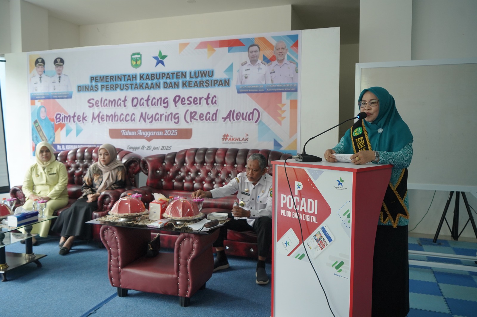Luwu, NUSANTARAHEBAT.CO.ID — Ketua Tim Penggerak PKK Kabupaten Luwu sekaligus Bunda Literasi, Hj. Kurniah Patahudding, A.Md membuka secara resmi Kegiatan Bimbingan Teknis Membaca Nyaring (Read Aloud) yang dilaksanakan oleh Dinas Perpustakaan dan Kearsipan Kabupaten Luwu, Rabu (18/6/2025).