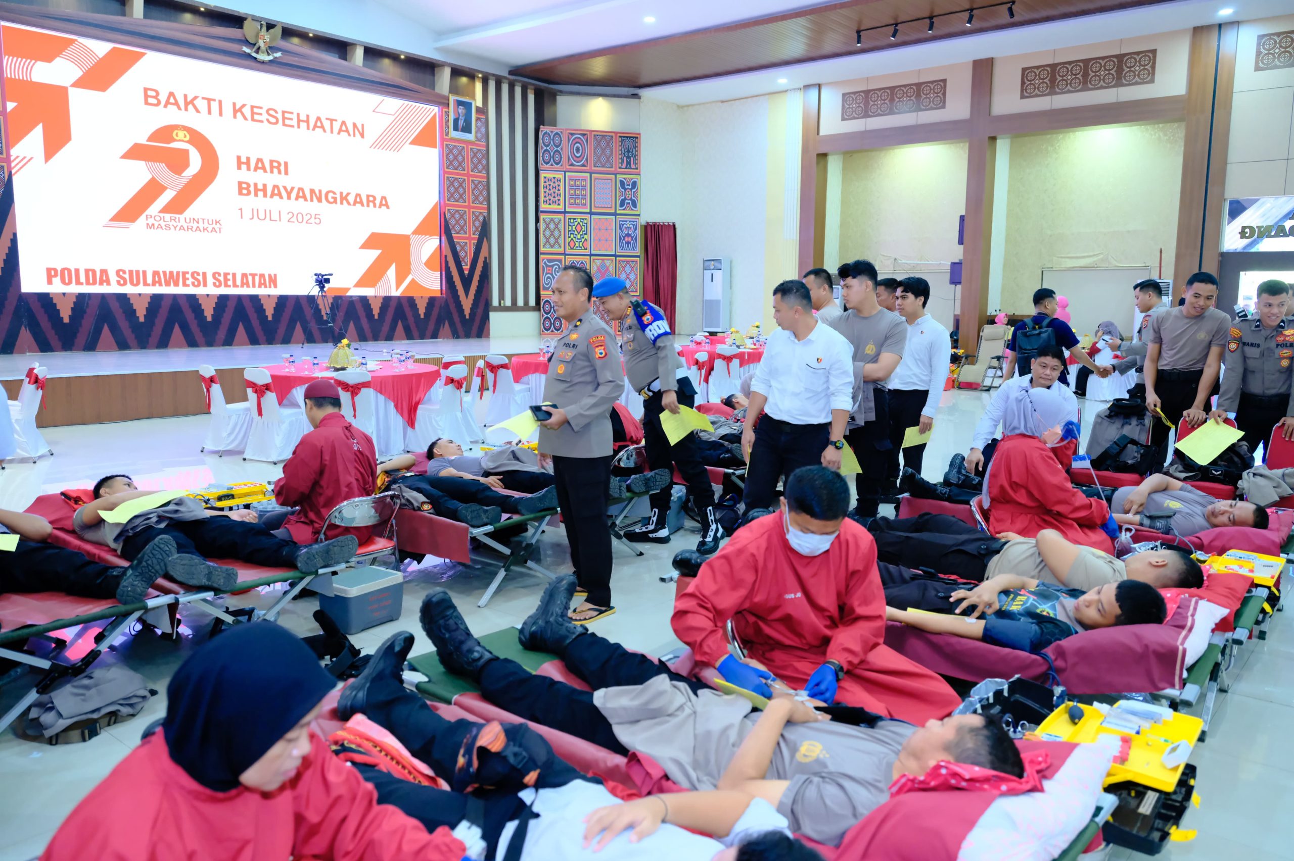 Makassar, NUSANTARA HEBAT.CO.ID — Dalam rangka menyambut Hari Bhayangkara ke-79, Kepolisian Daerah Sulawesi Selatan menggelar kegiatan Bakti Kesehatan di Aula Mappaoddang Mapolda Sulsel, Senin (16/06/2025).