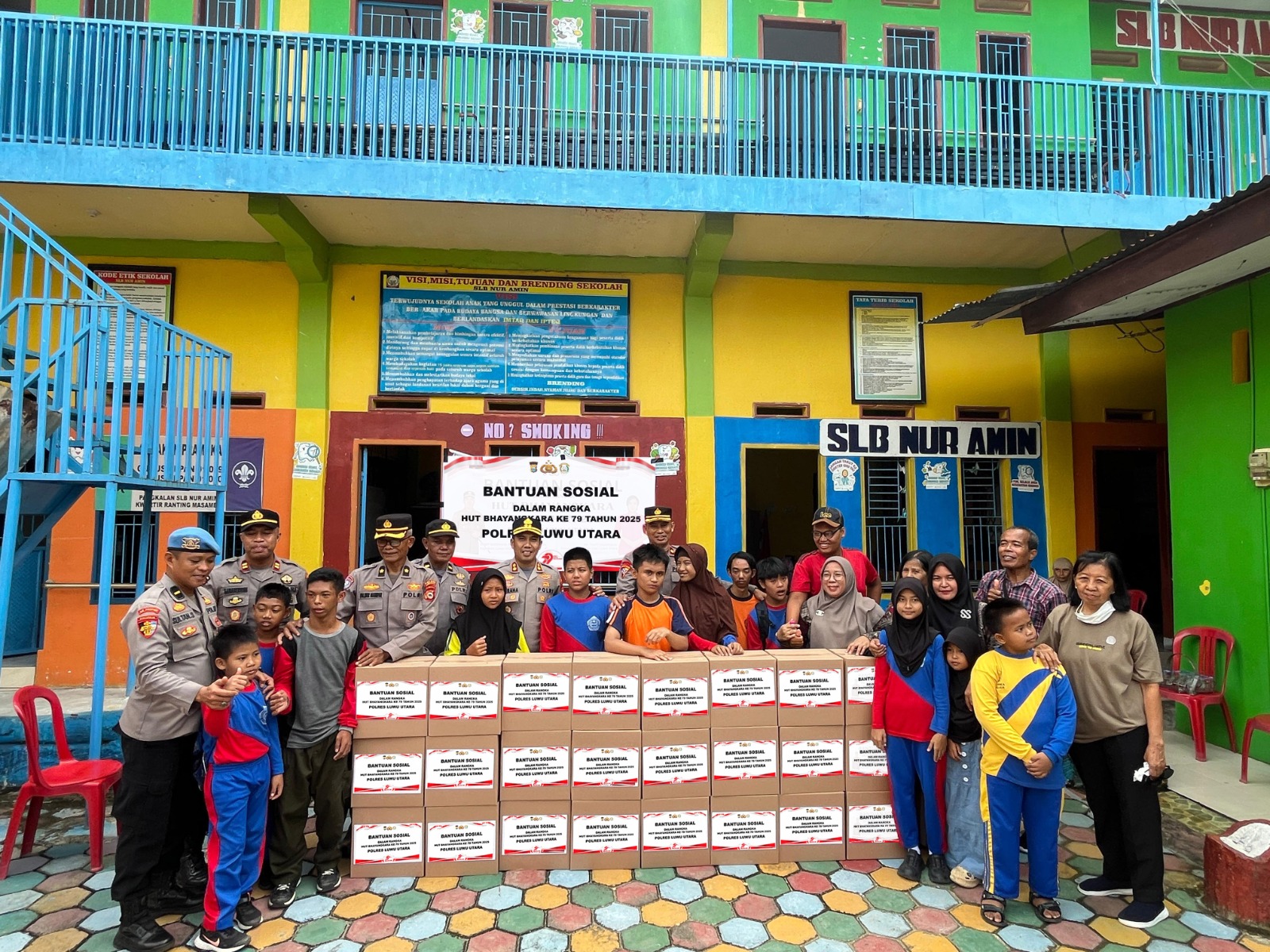 Luwu Utara, NUSANTARA HEBAT.CO.ID – Dalam rangka menyambut Hari Bhayangkara ke-79 tahun 2025, Kapolres Luwu Utara AKBP Nugraha Pamungkas, S.I.K., M.H. bersama Ketua Bhayangkari Cabang Luwu Utara, Ny. Tanti Nugraha, kembali menunjukkan kepeduliannya terhadap anak-anak berkebutuhan khusus dengan mengunjungi Sekolah Luar Biasa (SLB) Nur Amin, yang terletak di Jalan Lesangi, Kelurahan Bone, Kecamatan Masamba, Kabupaten Luwu Utara.