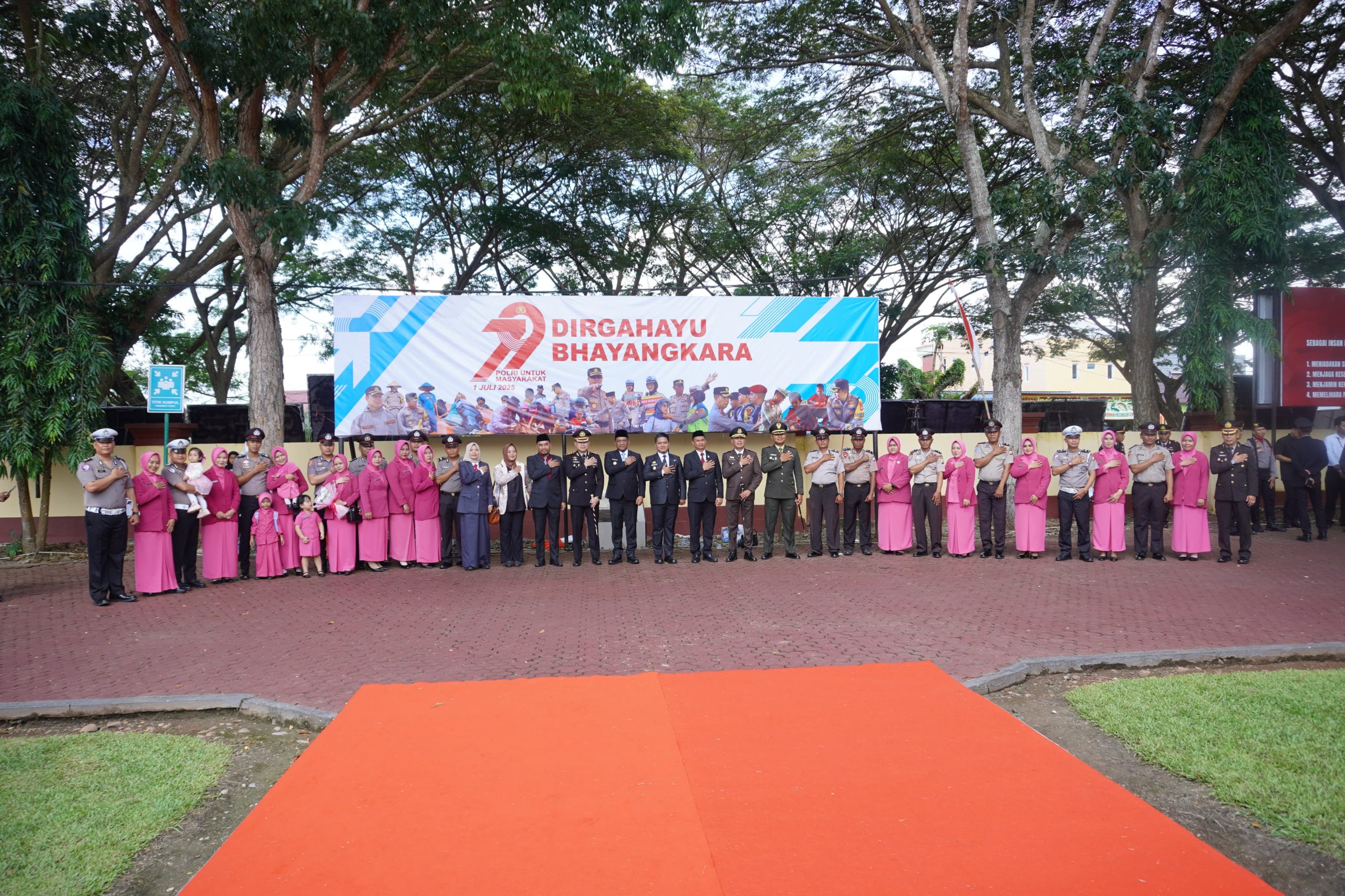 Peringatan Hari Bhayangkara kali ini mengusung tema “Polri untuk Masyarakat”, dihadiri pula oleh unsur Forkopimda, para Kepala OPD, insan pers, tokoh masyarakat dan jajaran Polres Luwu.