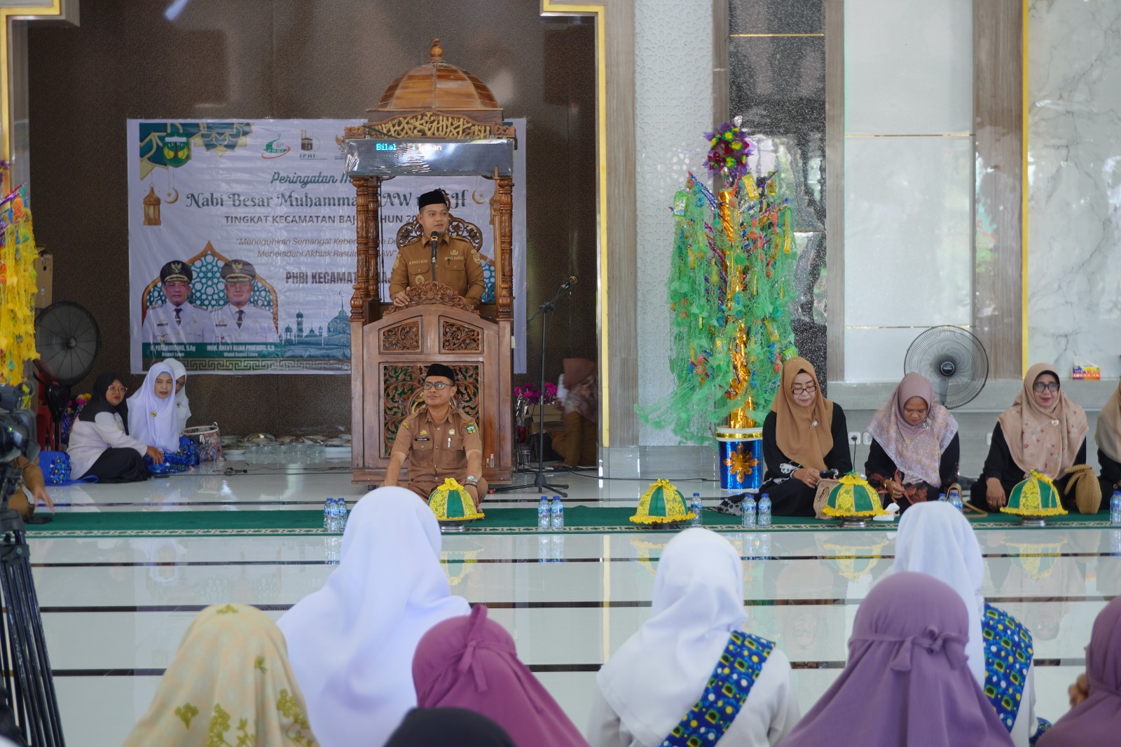 LUWU,NUSANTARA HEBAT.CO.ID – Wakil Bupati Luwu, Muh. Dhevy Bijak Pawindu menghadiri peringatan Maulid Nabi Muhammad SAW di Masjid Raya Babussa’adah Kecamatan Bajo, Senin (22/9/2025).
