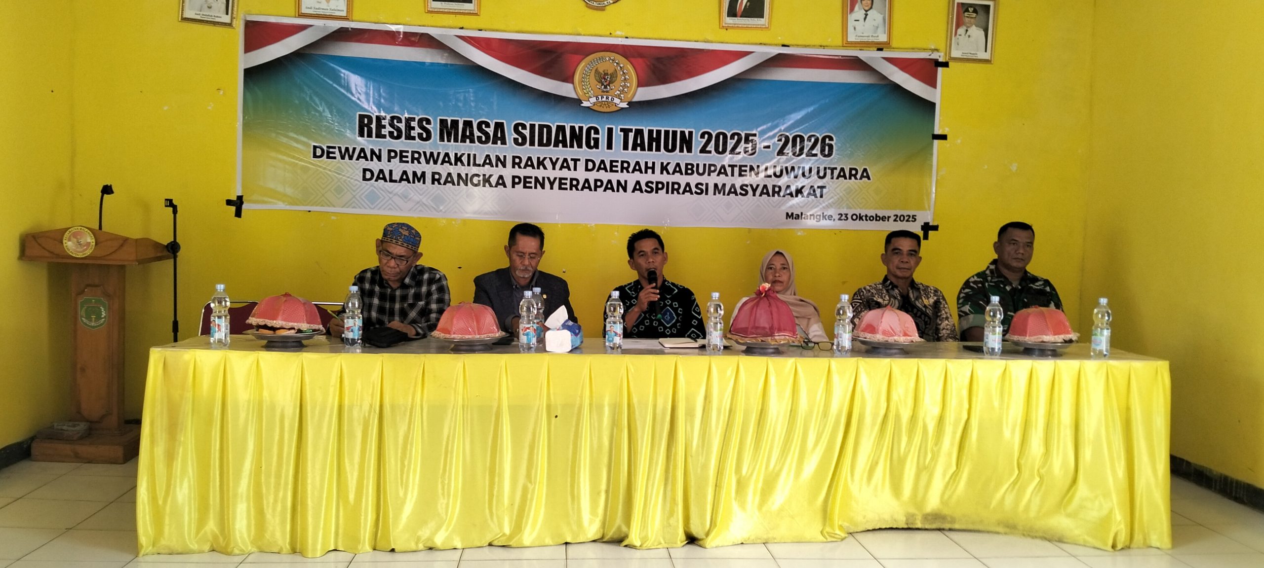 Luwu Utara, NUSANTARA HEBAT.CO.ID — Dewan Perwakilan Rakyat Daerah ( DRPD) Kabupaten Luwu Utara melaksanakan Reses masa sidang I tahun 2025-2026, dalam rangka menyerap aspirasi masyarakat, di Aula Kantor Camat Malangke, Kamis (23/10/2025).