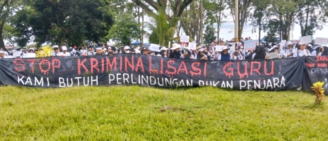 “Guru tidak boleh dikriminalisasi. Guru adalah pilar bangsa yang mendidik generasi penerus. Penegak hukum seharusnya lebih tegas terhadap kasus besar yang merugikan negara,” tegasnya.