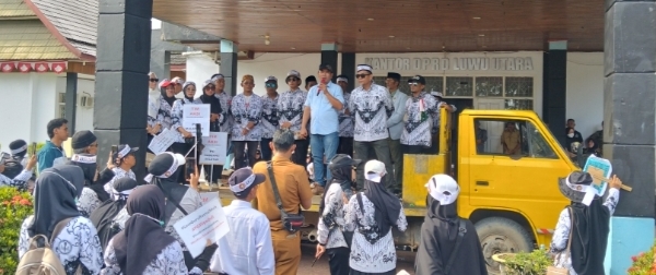 Luwu Utara, NUSANTARA HEBAT.CO.ID — Wakil Ketua DPRD Luwu Utara, Karemuddin, menerima langsung aksi damai yang dilakukan Persatuan Guru Republik Indonesia (PGRI) Cabang Luwu Utara di halaman kantor DPRD, Selasa (04/11/2025).