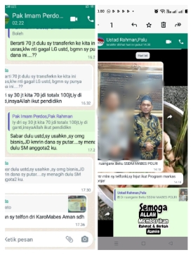 ” Saya akan laporkan ke Aparat Penegak Hukum ,jika Ustad Rahman ini tidak ada niat baik untuk mengembalikan dana yang telah di ambil.tegas nya