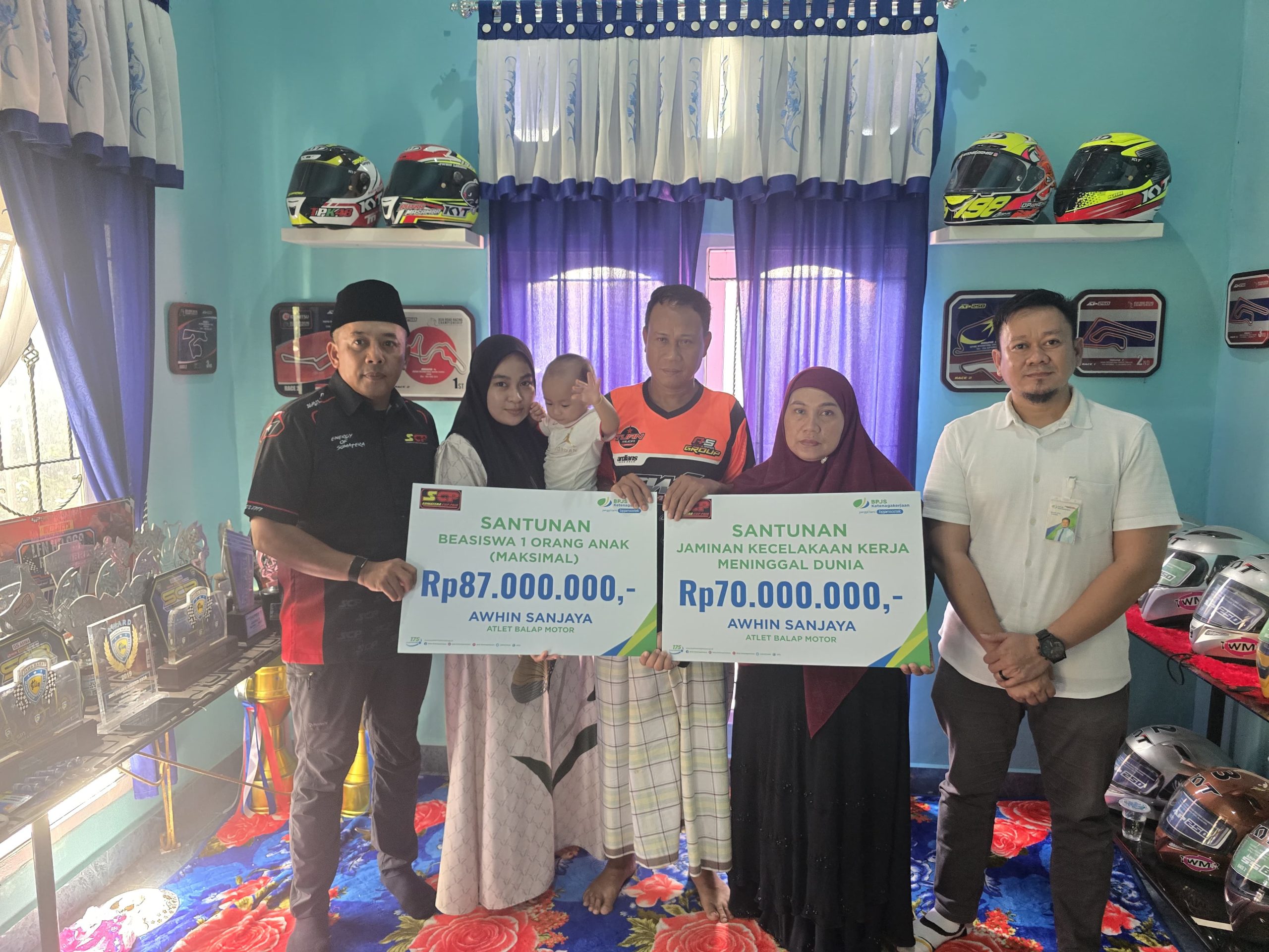 “Santunan yang diserahkan kepada ahli waris almarhum Awhin Sanjaya adalah santunan Jaminan Kecelakaan Kerja (JKK) meninggal dunia sebesar Rp.70.000.000., dan santunan Beasiswa satu orang anak maksimal sebesar Rp.87.000.000., jadi total yang diberikan sebesar Rp 157.000.000.,” jelasnya.