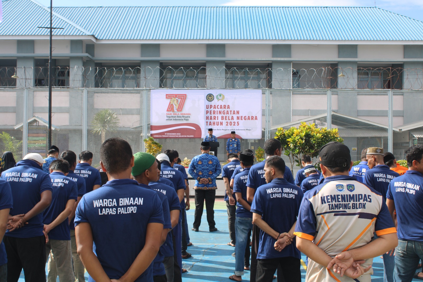 Upacara berlangsung dengan khidmat dan tertib. Bertindak selaku Inspektur Upacara Kepala Pengamanan Lapas Palopo, Hartono, dengan Komandan Upacara Kasubsi Keamanan, Rusli. Rangkaian upacara diawali dengan laporan Komandan Upacara, dilanjutkan dengan pengumandangan Mars Bela Negara, serta pembacaan Ikrar Bela Negara yang diikuti oleh seluruh peserta upacara.
