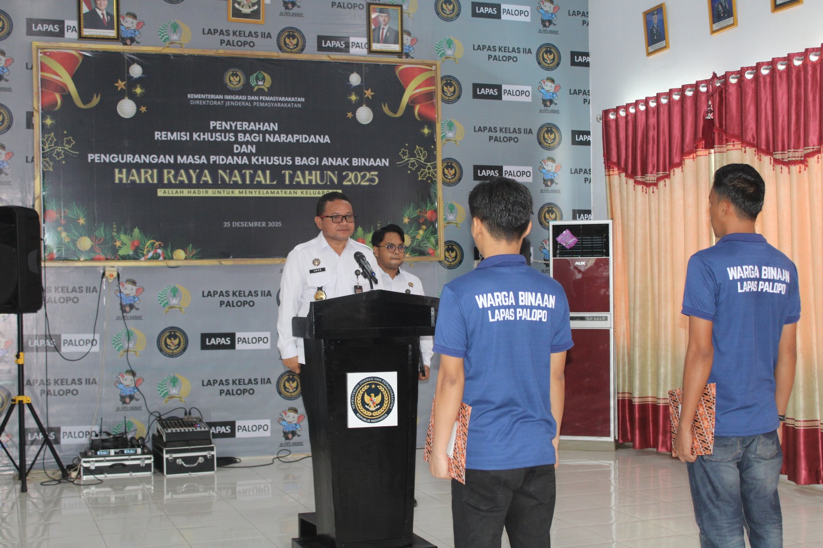 PALOPO, NUSANTARAHEBAT.CO.ID — Dalam rangka memperingati Hari Raya Natal Tahun 2025, Lembaga Pemasyarakatan Kelas IIA Palopo melaksanakan kegiatan Penyerahan Remisi Khusus bagi Narapidana serta Pengurangan Masa Pidana Khusus bagi Anak Binaan, Kamis (25/12/2025), bertempat di Aula Lapas Kelas IIA Palopo.