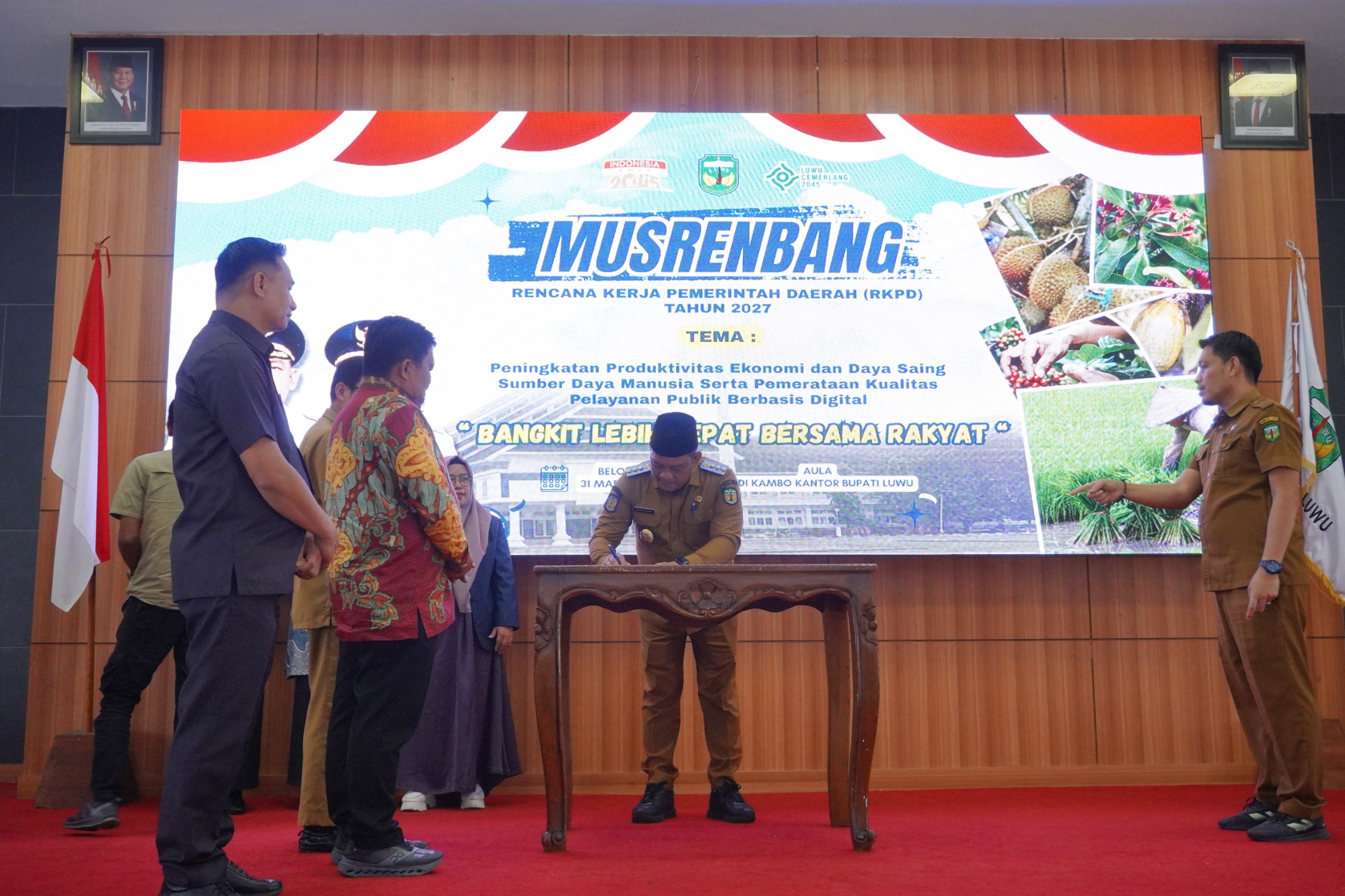 Luwu, NUSANTARA HEBAT.CO.ID –– Bupati Luwu membuka secara resmi Musyawarah Perencanaan Pembangunan (Musrenbang) RKPD Tahun 2027 tingkat kabupaten yang dirangkaikan dengan penyerahan sertifikat indikasi geografis Kopi Arabika Latimojong serta penghargaan dokumen perencanaan terbaik, bertempat di Aula Andi Kambo, Selasa (31/3/2026).