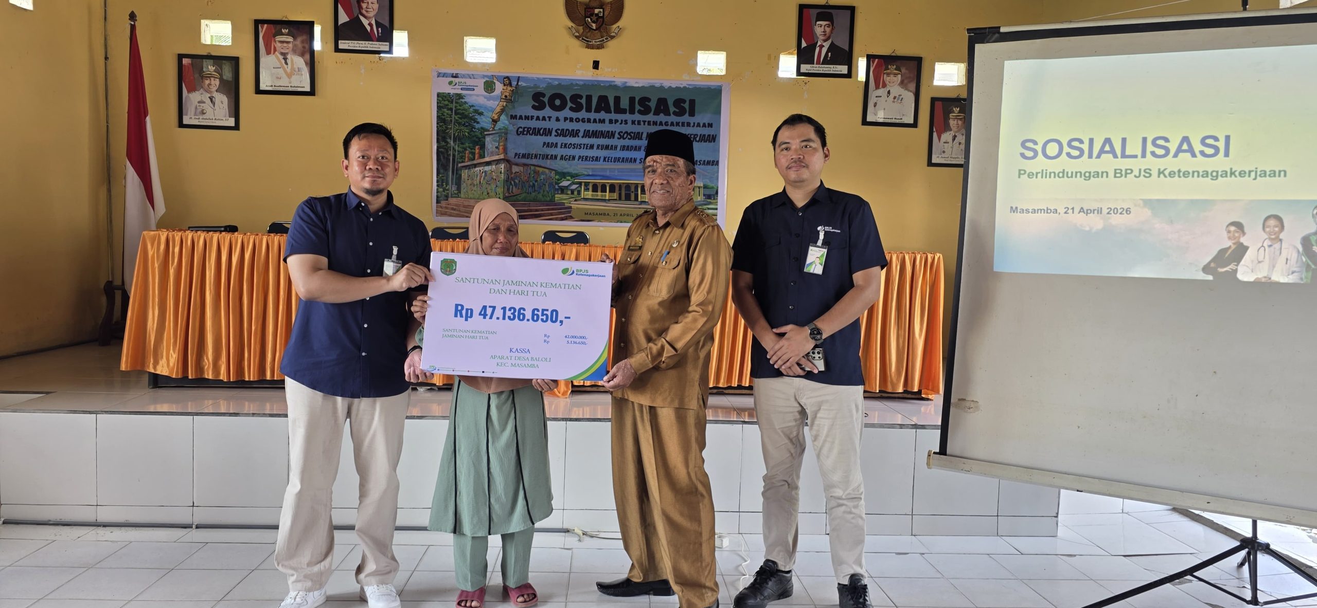 Kepala BPJS ketenagakerjaan Luwu Utara Sosialisasi dan Serahkan Santunan Kematian Rp 47.136.650 kepada Ahli Waris